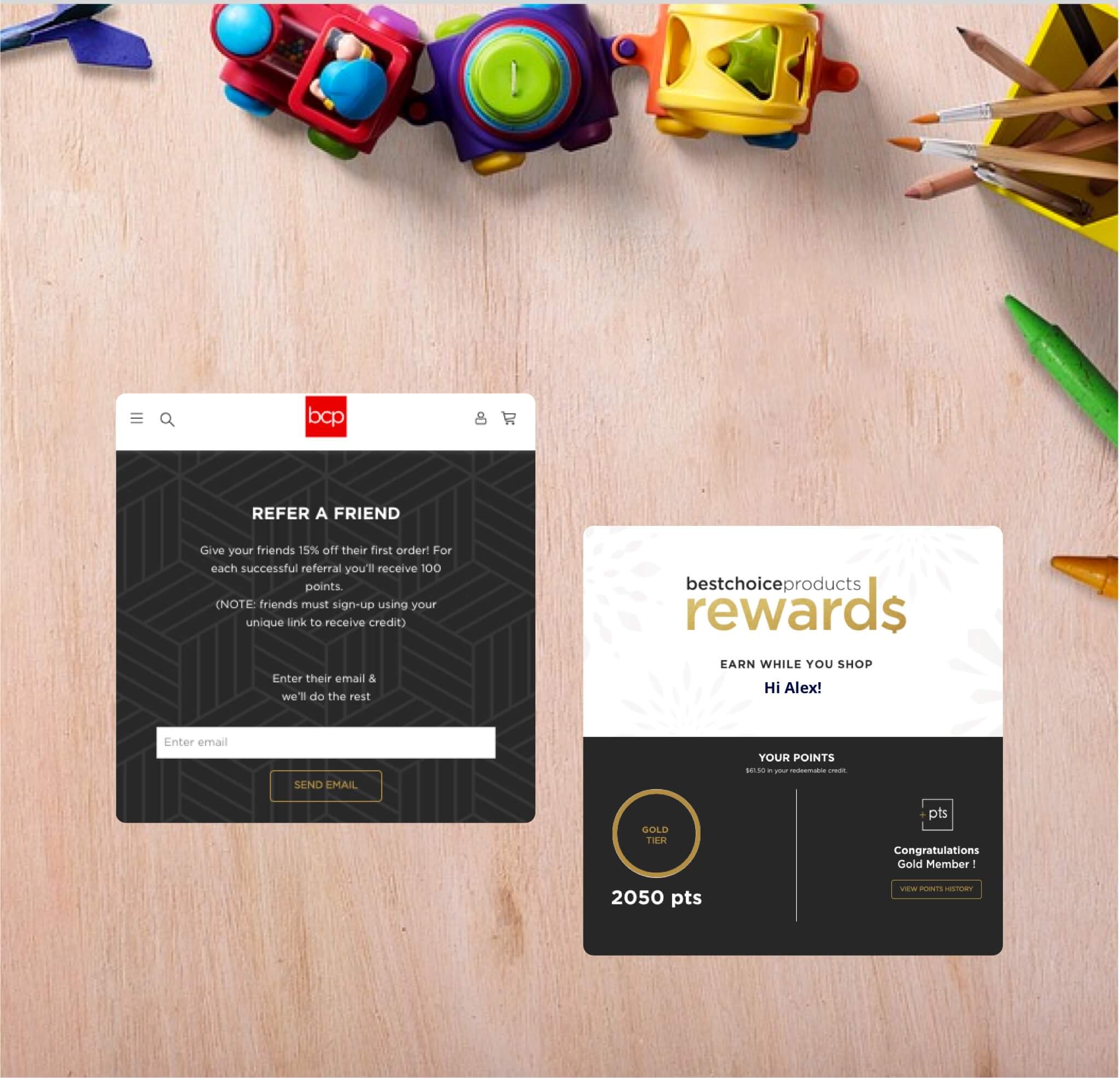An important component of BCP’s incentive marketing program is their rewards page; it’s the one-stop-shop where customers can not only check their VIP status and earn points, but also easily refer friends.