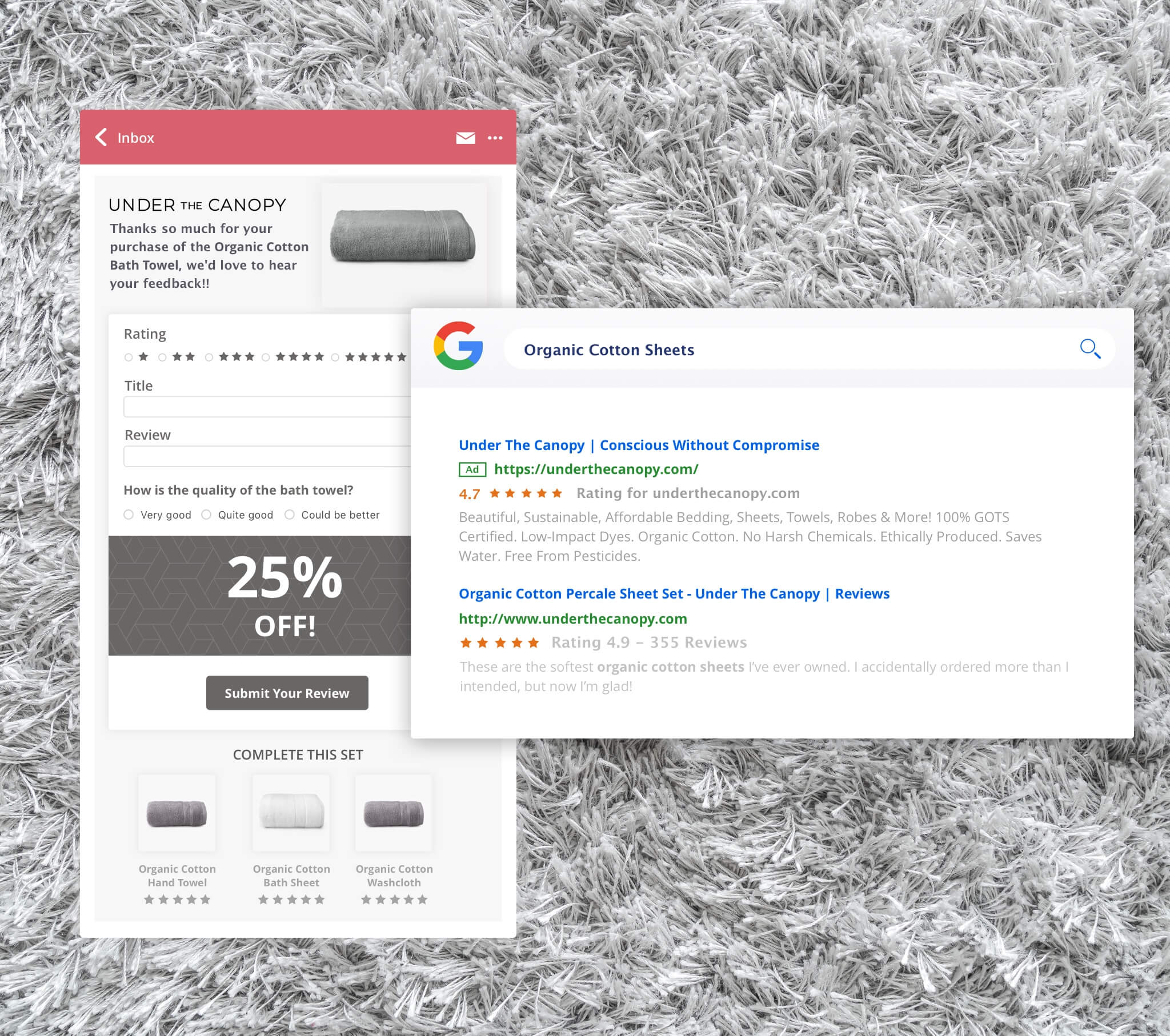 In order to increase organic search ranking, Under The Canopy needed to increase the amount Google-crawlable content they produced. One extremely rich source of this is customer reviews, so Under The Canopy needed to generate a large amount of user-generated content.