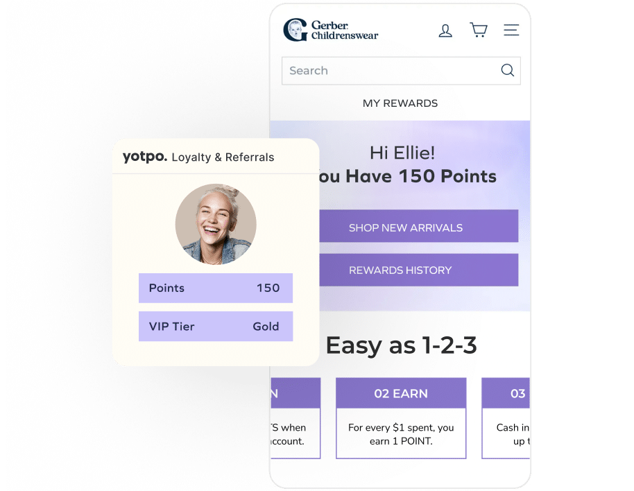 Gerber's loyalty program with Yotpo helps to incentivize repeat purchases and drive higher spending. Parents see points as spendable dollars and stack rewards for bigger orders, while loyalty-driven referrals turn satisfied customers into advocates.