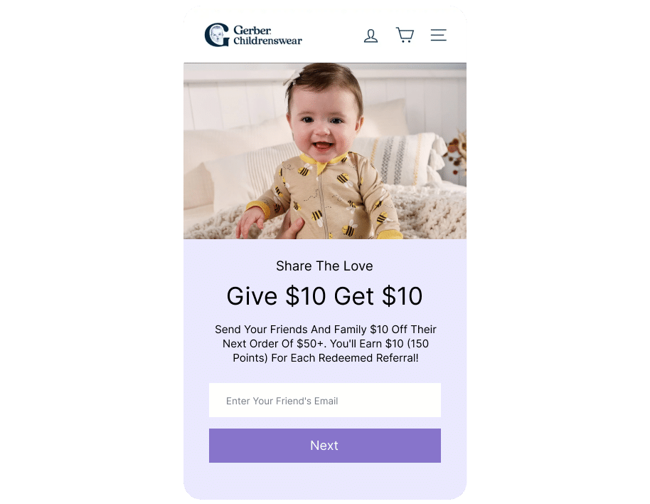 Gerber's loyalty program enables referrals, turning satisfied customers into advocates who bring new parents into their ecosystem. Members get to earn points and Gerber reduces expensive advertising costs while building the trust parents need.