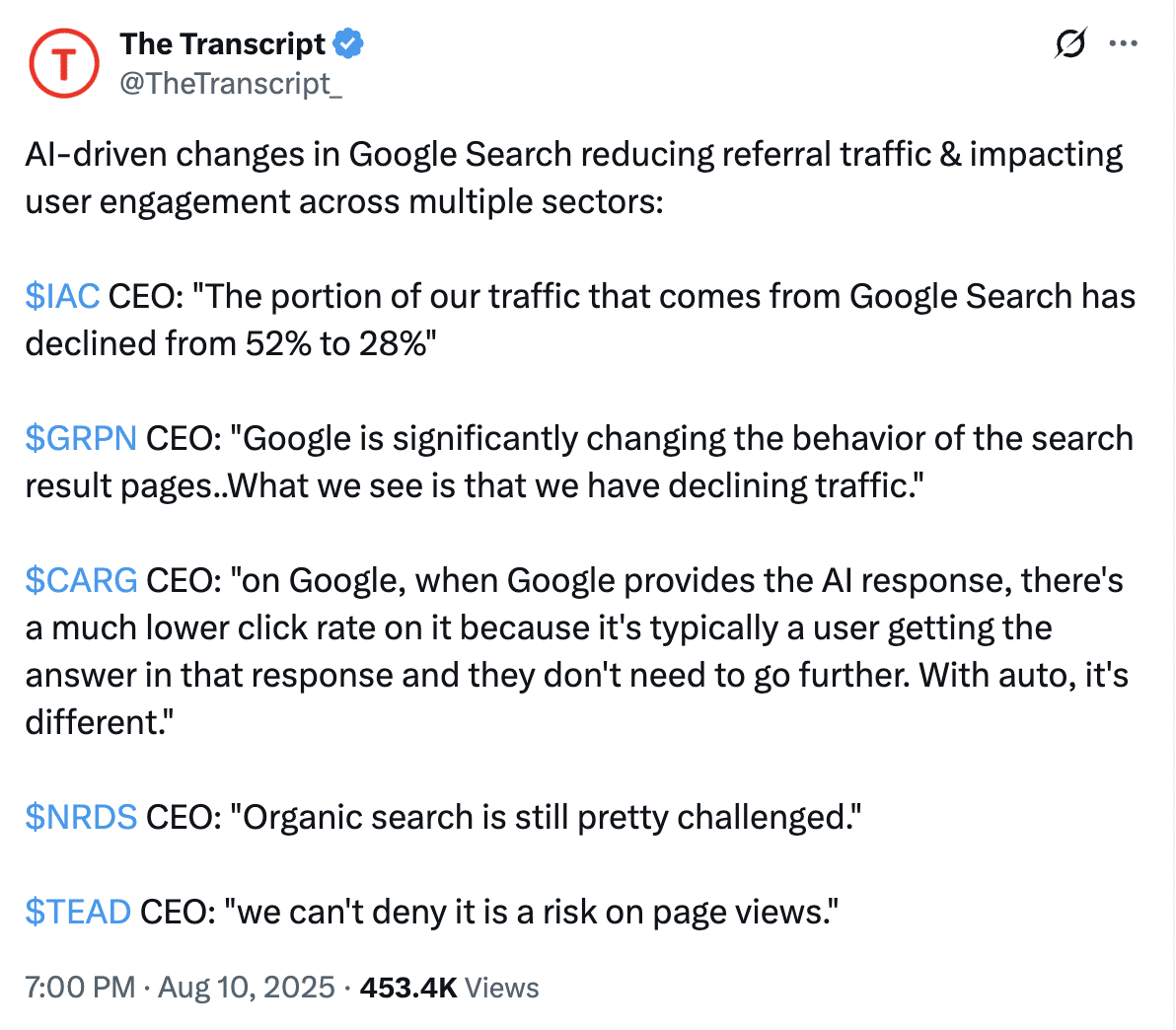 Well, here’s the plot twist nobody saw coming this fast: IAC’s CEO just revealed their Google Search traffic cratered from 52% to 28%