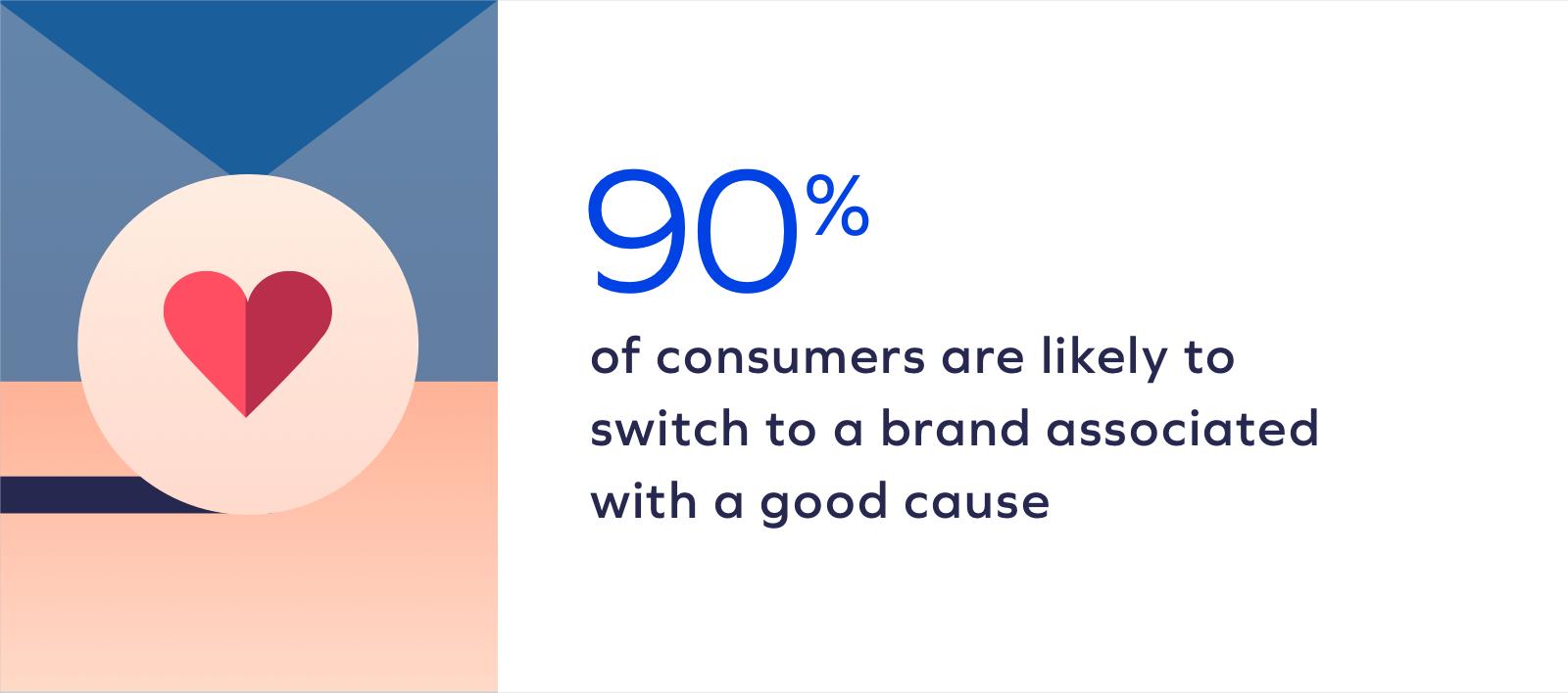 Research shows that 90% of consumers are likely to switch brands to one associated with a good cause, given comparable price and quality. If your competitors aren’t engaging in cause marketing, that presents an opportunity for your brand to be the one they switch to.