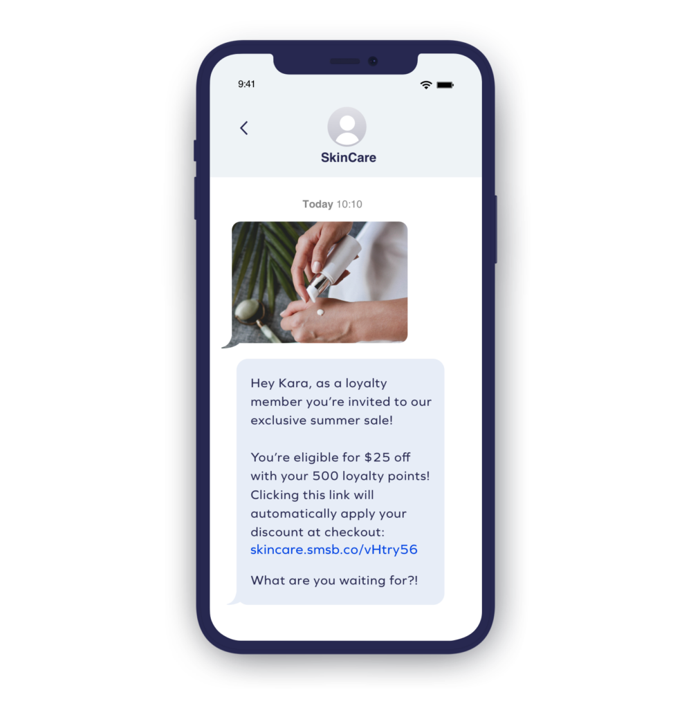 Entice your most loyal shoppers, like members of your loyalty program, with a brand new product launch or brand partnership, and text them an exclusive offer or time-sensitive discount code to incentive immediate action. To make the path-to-purchase even easier for members, allow them to redeem their loyalty points via SMS. No copying and pasting codes or even scrolling through redemption options at checkout. Members can simply click their reward link from their phones and checkout.